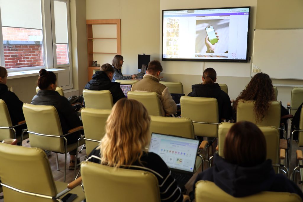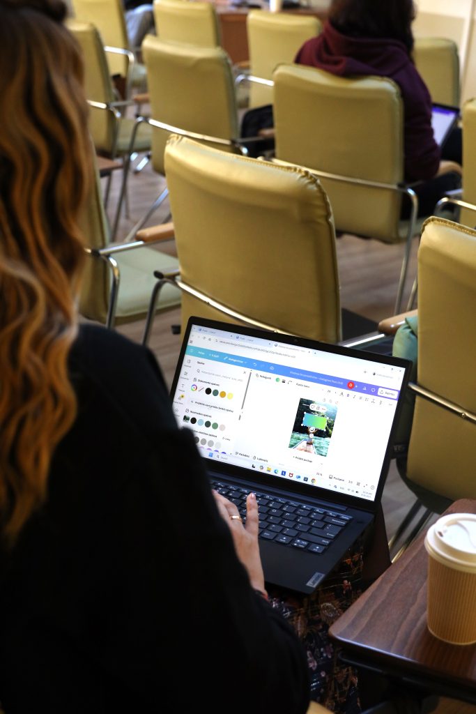 Mokymų metu studentai gilino žinias apie estetiškai patrauklių ir efektyvių vizualinių sprendimų kūrimą, mokėsi dirbti su įvairiais šablonais, pasirinkti tinkamus spalvų derinius bei kurti įtikinamas vizualines žinutes, skirtas įvairioms komunikacijos platformoms. 🎯