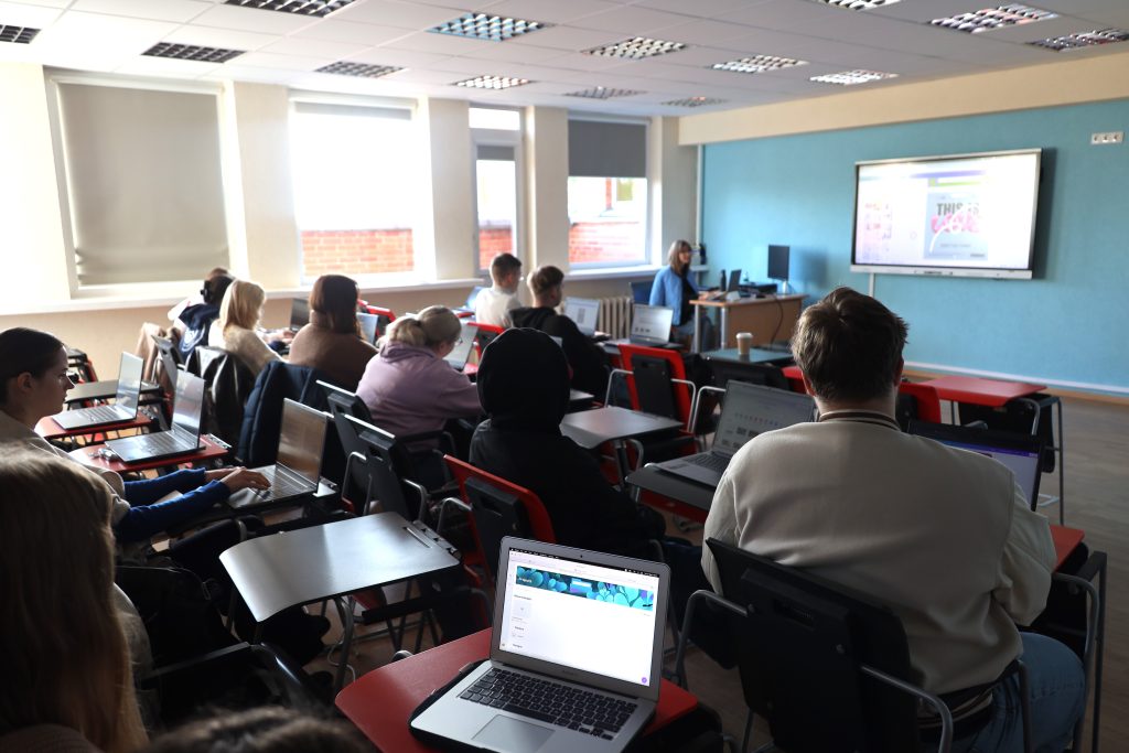 56 Fakulteto studentai „Canva“ mokymuose tobulino skaitmeninius įgūdžius ir gebėjimą patraukliai pristatyti savo idėjas