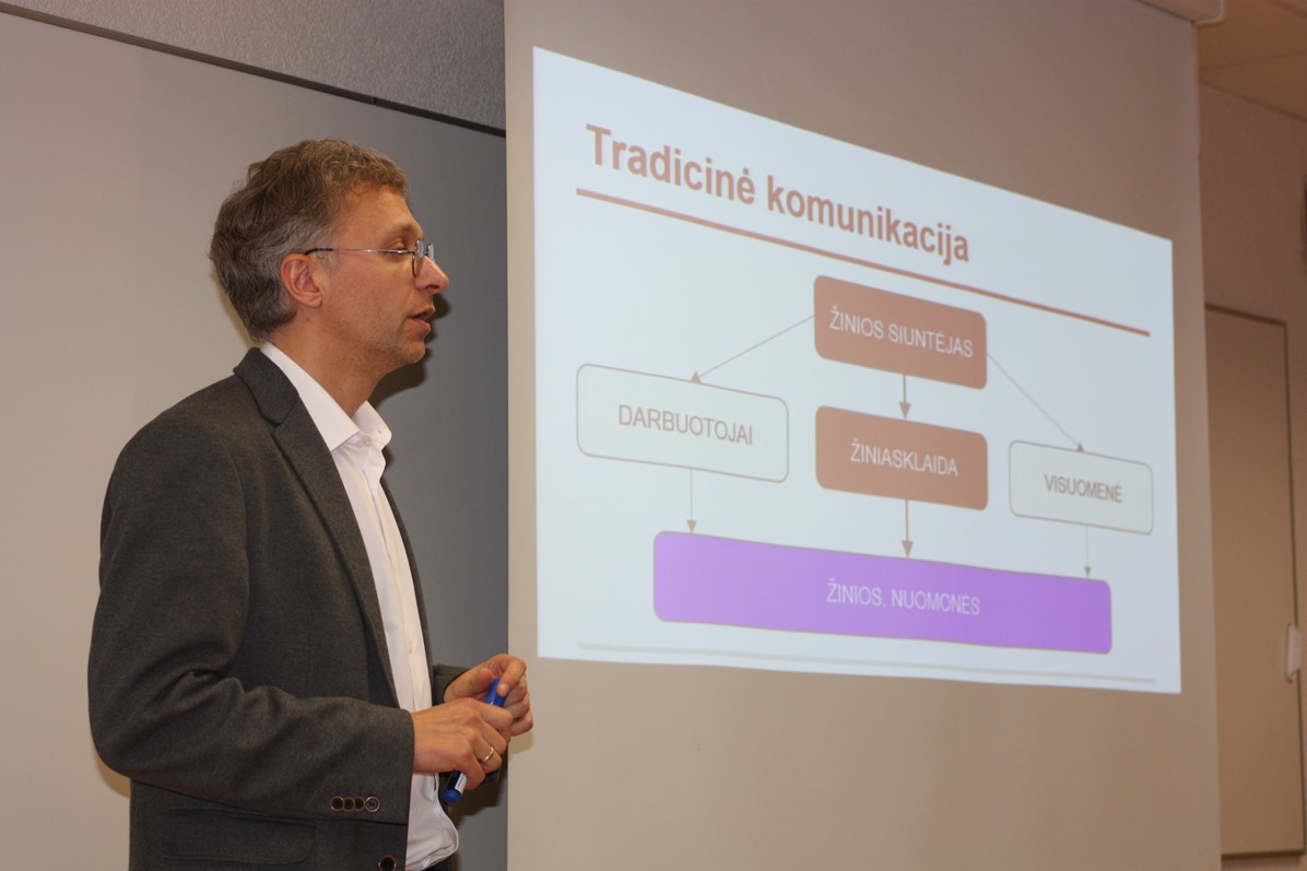 Paskaitoje apie šiuolaikinę komunikaciją jis pasakojo ne tik apie pokyčius ir jų priežastis ryšių su visuomene srityje, bet ir apie galimybes, taip pat – apie sėkmingos komunikacijos elementus, kurių svarbiausi: kuriami ryšiai ir santykiai, nuoseklus bendravimas, žinios ir edukacija bei linksmybės ir pramogos.