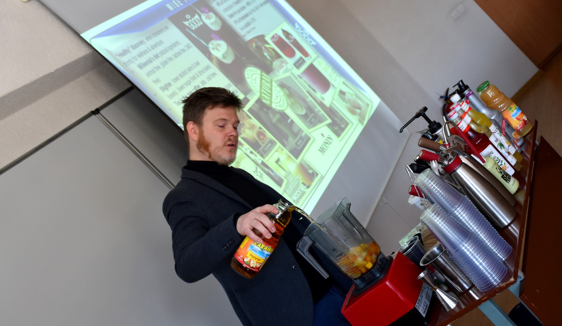 Ar tai, kas madinga, yra sveika? Apie tendencijas maisto ir gėrimų versle, Turizmo katedros organizuojamo renginio „Restore“ metu, RESTORANŲ IR VIEŠBUČIO VERSLO studentai kalbėjosi su sveikos mitybos specialiste Vaida Kurpiene bei gėrimų idėjų ir barų konsultavimo specialistu Tomu Pletaru.