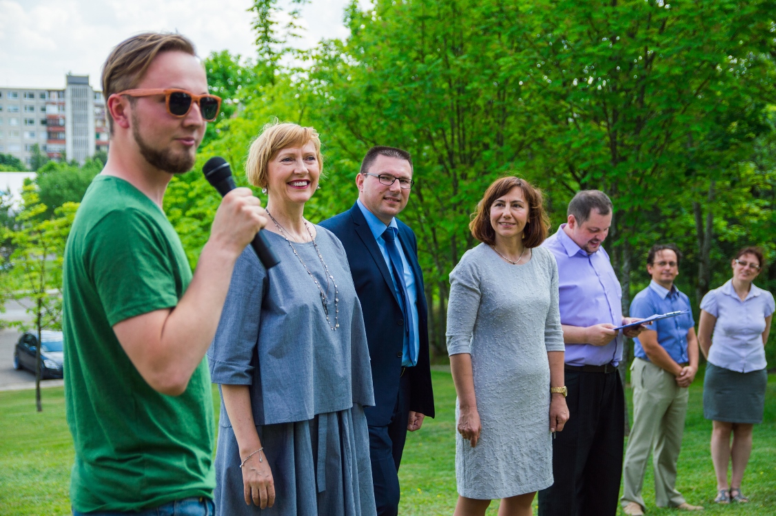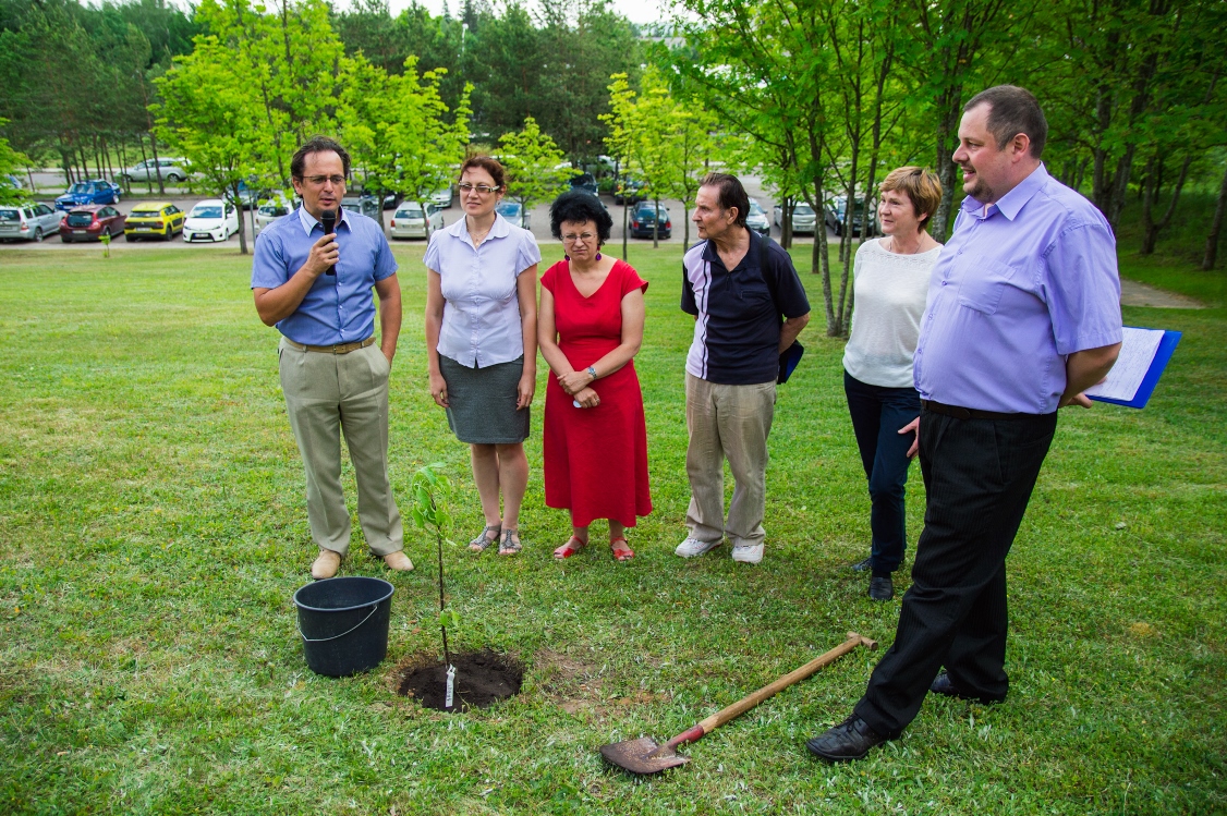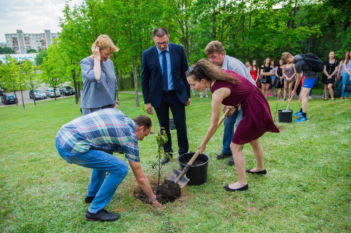 Skambant Fakulteto kūrybiškumo ir verslo inovacijų anglų kalba studentės Gretos Aukštuolytės atliekamoms dainoms, dėstytojai įkasė tris obelis ir simbolinę kapsulę su palinkėjimu ateinančioms kartoms.