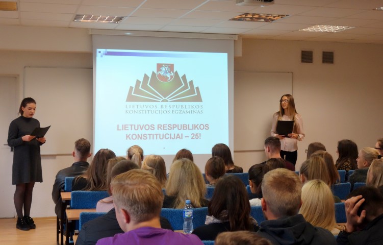 Šiemet Lietuvos Respublikos Konstitucijai – 25! Daugiau nei 100 dalyvių – tiek norinčiųjų pasitikrinti pagrindinio šalies įstatymo išmanymą vakar susirinko Verslo vadybos fakultete.