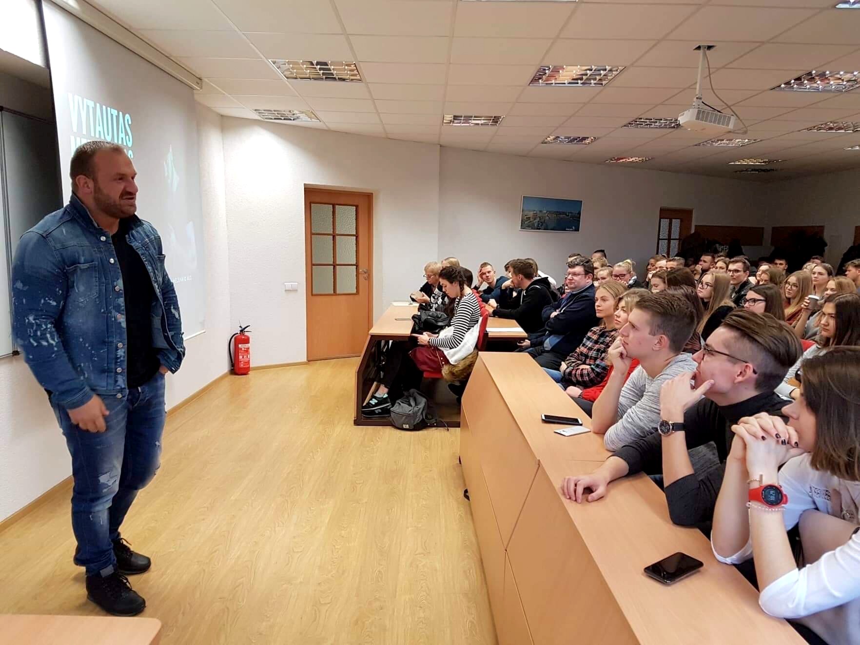 13 pranešėjų, 700 studentų ir didžiulis skaičius naujų idėjų gimė dėka Tarptautinio verslo katedros studentų ir VIKO SA organizuoto renginio „Verslo vėjai 2018“. Įvairių sričių profesionalai ir verslo atstovai Pasaulinę verslumo savaitę dalijosi patirtimi, negailėjo patarimų studentams. Nuo ko pradėti kurti, kaip kurti ir plėsti verslą, pasakojo: „Healt and sport performance“ įkūrėjas Bronius Burneika, „Trendy bar“ įkūrėjai Rapolas Sausaitis ir Vilius Šukys, „Liu patty“ savininkė Liucina Rimgailė, verslininkas Ironvytas, „Hnit-Baltic“ pardavimų vadovas Mantas Butrimavičius, „Startup Lithuania“ vadovė Roberta Rudokienė, Azerbaidžiano Respublikos Ambasados atašė Lietuvai Samir Musayev, UAB „Digitouch“ direktorius Andrius Kontrimavičius, UAB „Biok laboratorija“ rinkodaros vadovė Ieva Čepononė, UAB „Paysera“ generalinis direktorius Vytenis Morkūnas bei elektroninio verslo ekspertas Tomas Mačiulis.