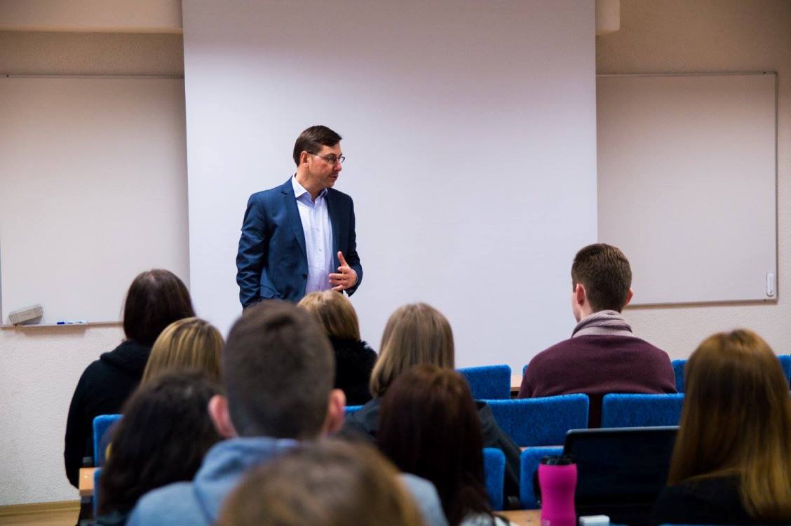 „Lavinimasis yra tiesiausias kelias į sėkmę. Tai žaidimas be pralaimėjimo“, – pradėjo susitikimą su studentais G. Steponavičius ir pasiteiravo, ar kas nors iš dalyvių nutuokia, kokios profesijos bus paklausios ateityje.