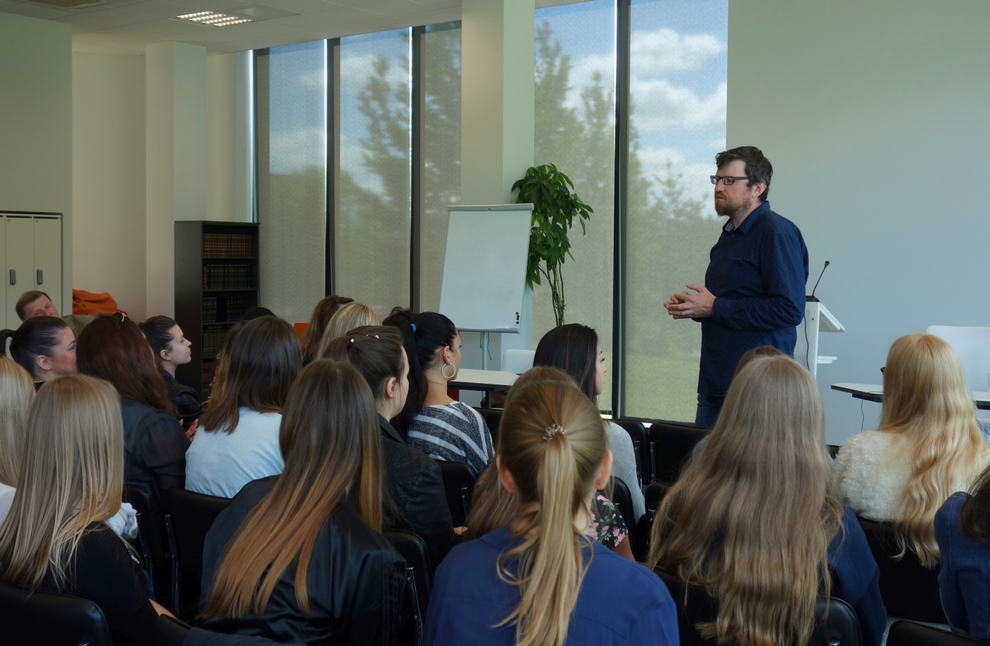Kiek pilietinės iniciatyvos gali sumažinti emigraciją? Kaip atsiranda pilietiškumas ir kaip jį puoselėti? Apie tai ir ne tik diskutavome Pilietiškumo dienos renginyje. Savo įžvalgomis su Vilniaus kolegijos Verslo vadybos fakulteto ir Mykolo Romerio universiteto studentais dalinosi režisierius, aktorius ir gidas Donatas Jokūbaitis. Svečias visus žavėjo ne vien taikliomis įžvalgomis ir giliomis mintimis, bet ir spalvinga bei įtaigia kalba.