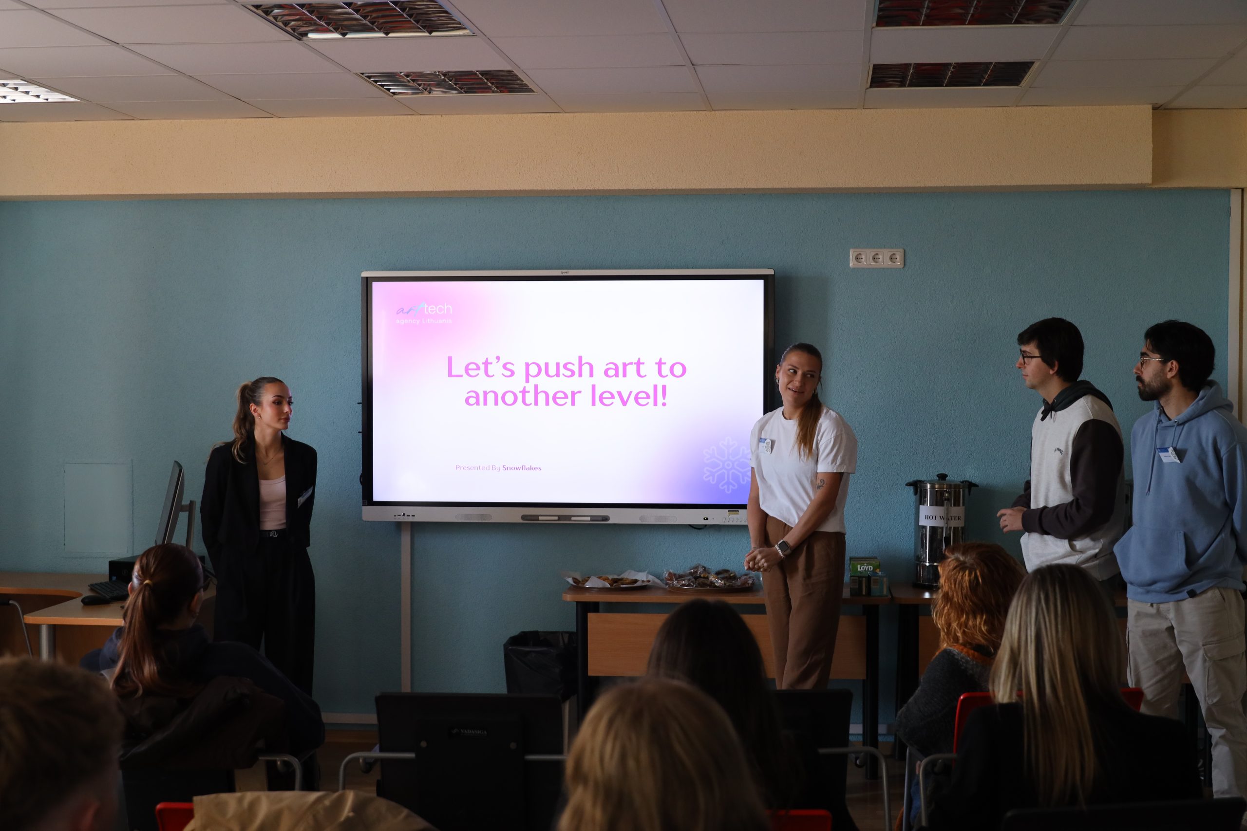 Savaitė baigėsi studentų pristatymais, kuriuose įmonei „ArtTech Agency Lithuania” pateikė komunikacinių sprendimų pasiūlymus, atliepiančius įmonės pateiktą iššūkį. Dėkojame visiems dalyvavusiems už produktyvų darbą ir galimybę pasidalinti tarptautine patirtimi!