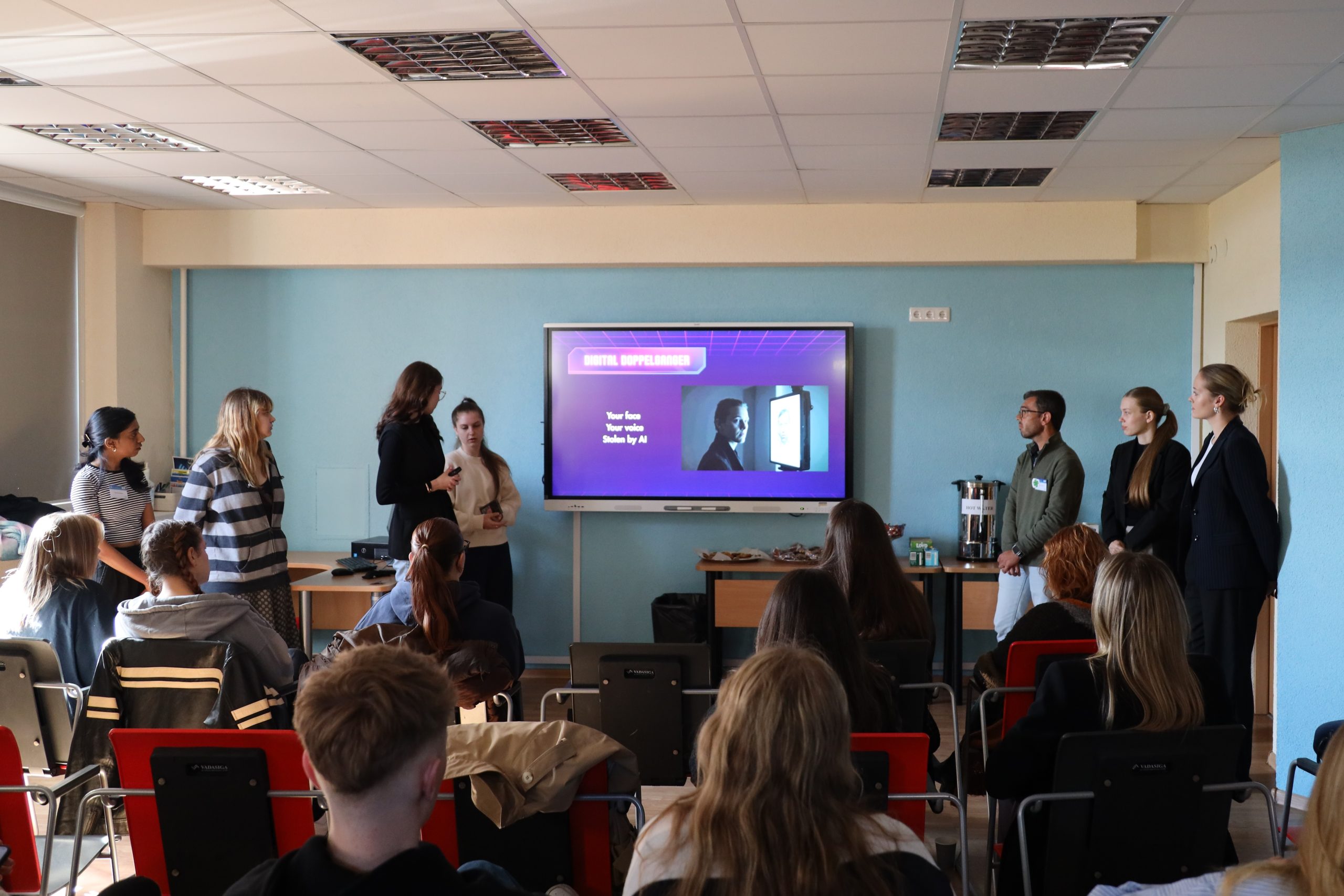 Paskaitų metu studentai atliko praktines užduotis, lavino kūrybiškumo įgūdžius naudojant DI. Vizito UAB „Gluk Media“ metu projekto dalyviai susipažino su įmonės darbo principais šiuolaikinių technologijų kontekste. Visą savaitę studentai dirbo mišriose tarptautinėse grupėse, ieškodami geriausių komunikacinių sprendimų „ArtTech Agency Lithuania” pateiktam iššūkiui – dėkojame agentūros generalinei direktorei ir bendraįkūrėjai Agnestai Filatovei už aktyvų įsitraukimą ir galimybę bendradarbiauti. Studentus kuravo mūsų dėstytojai Valdas Dambrava, Karolis Visockas, Vilma Kardauskė.