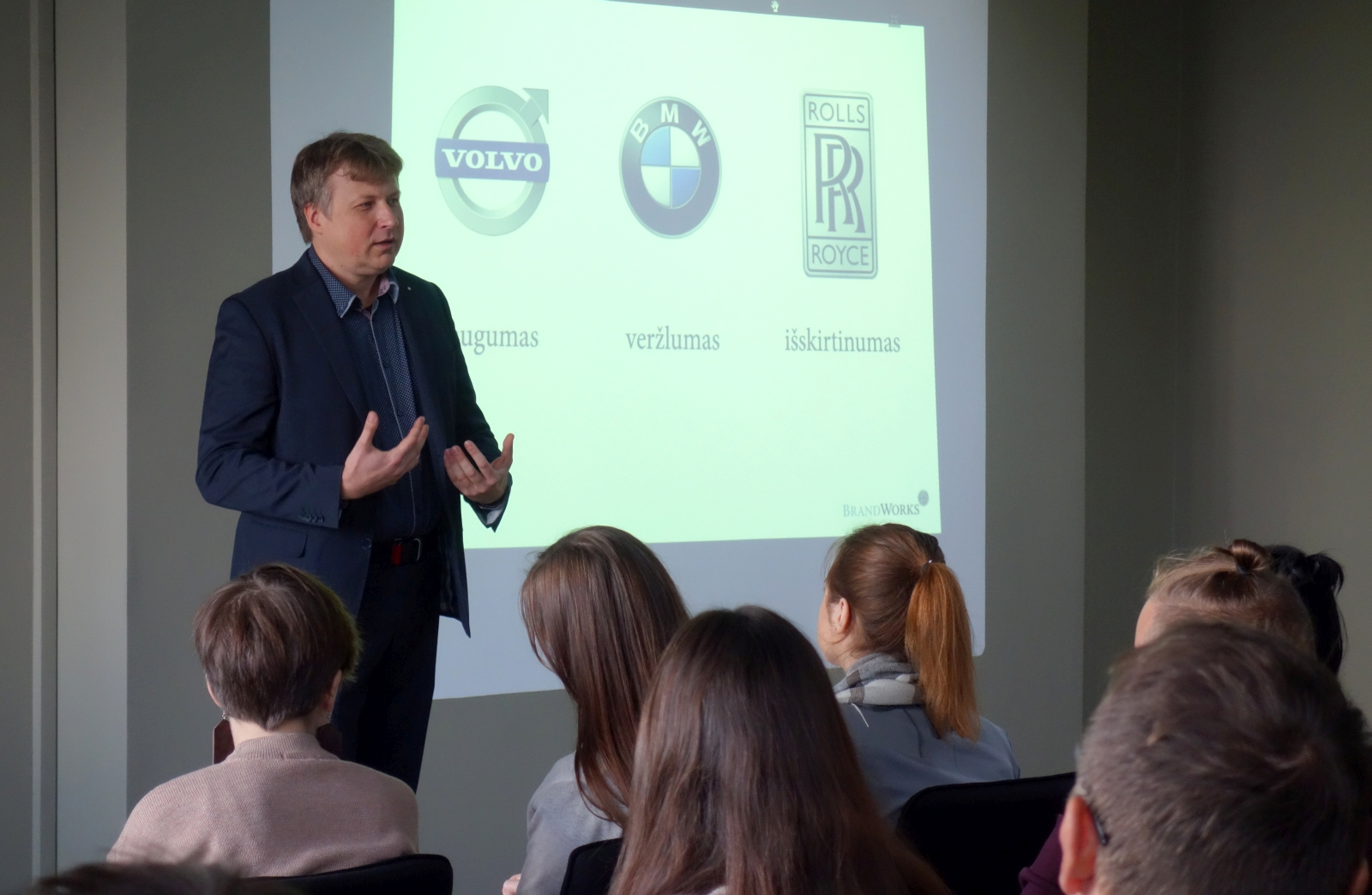 Paklausyti Verslo vadybos fakulteto lektoriaus UAB „Brandworks“ vadovo Antano Jonušo paskaitos „Nuo idėjos iki prekės ženklo“ susirinko daugiau nei penkiasdešimt dalyvių.