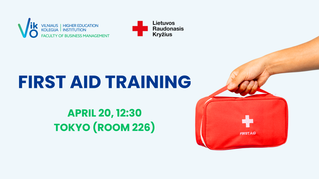 Maloniai kviečiame dalyvauti edukacinėje sesijoje „Pirmosios pagalbos mokymai“, kuriuos ves „Raudonojo Kryžiaus“ atstovai. Mokymai vyks 2026 m. balandžio 20 d. 12:30 val. 226 auditorijoje (Tokijas), Vilniaus kolegijos Verslo vadybos fakultete (Didlaukio g. 49, Vilnius).