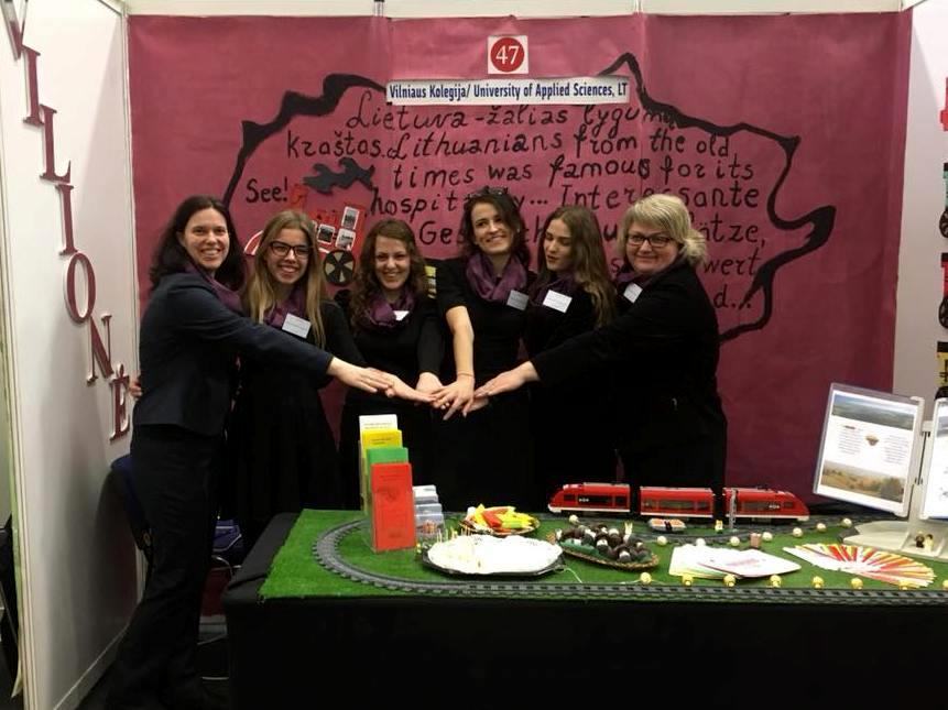 Komandą sudarė Turizmo vadybos studijų programos studentės: Greta Eidrigevičiūtė (TV15), Evita Baranauskaitė (TV15), Gintė Kasperavičiūtė (TV16) ir Eglė Janušonytė (TV16).Komandą mugei ruošė IB„Vilionė“ vadovė Ramunė Rapkauskaitė bei lektorė Violeta Žemaitienė. Kelionė buvo skirta Imitacinio bendrovių tinklo „Simulith“ dvidešimt penkerių veiklos metų jubiliejaus proga įprasminti skaičių 25 – penkis kartus po penkis. Šios idėjos vedami 5 Lietuvos trispalves nešėme per 5 šalis: Lietuvą, Lenkiją, Čekijos Respubliką, Austriją ir Slovėniją.