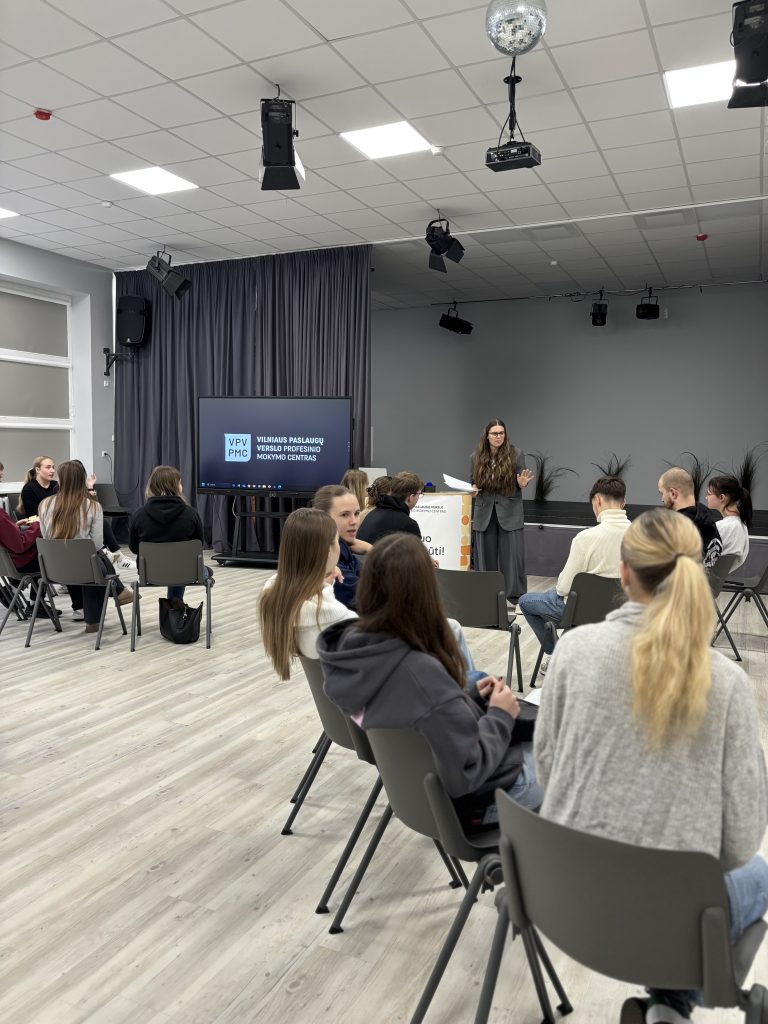 Organizacijų vadybos pirmo kurso studentai Vilniaus paslaugų verslo profesiniame mokymo centre dalyvavo renginių organizavimo edukacijoje – atliko įvairias užduotis, reikalaujančias iniciatyvumo, kūrybiškumo ir greito sprendimų priėmimo. Komandose parengti pristatymai, vizualinė medžiaga ir improvizuoti vaidinimai suteikė galimybę praktiškai patirti renginių planavimo procesus ir sustiprino studentų pasitikėjimą savo gebėjimais.