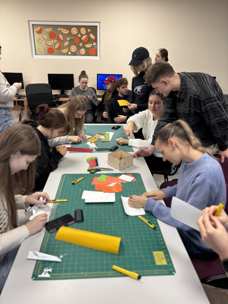 Ryšių su visuomene pirmo kurso studentai dalyvavo reklamos gamybos edukacijoje Vilniaus paslaugų verslo profesiniame mokymo centre, kur susipažino su reklamos kūrimo procesu, apžiūrėjo realius pavyzdžius ir, išklausę teorinę dalį, atliko praktines užduotis – kūrė spaudą ant maišelių bei gamino magnetukus. Ši patirtis leido geriau suprasti reklamos gamybos specifiką ir išbandyti kūrybinius įgūdžius realioje aplinkoje.