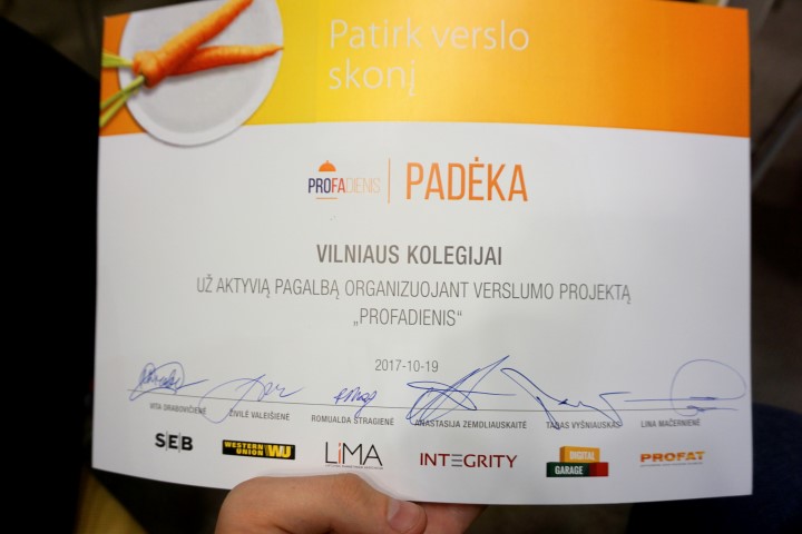 Šiais metais PROFADIENIO finale savo jėgas išbandė jungtinė Vilniaus kolegijos Verslo vadybos ir Ekonomikos fakultetų studentų komanda. Drauge su kitomis komandomis jie sprendė penkių įmonių jiems skirtus iššūkius, vieną jų – Lietuvos marketingo asociacijos (Lima) ir Biok laboratorijos, laimėjo kolegijos komanda.