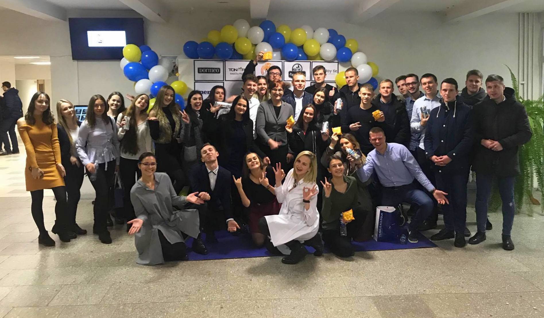 Nuo pat ankstaus trečiadienio ryto TARPTAUTINIO VERSLO (lietuvių ir anglų kalba) studentai įnirtingai darbavosi. Visus fakulteto bendruomenės narius ir svečius kvietė fotografuotis prie jų pačių sukurtos foto sienos, vaišino rėmėjų įsteigtomis dovanomis. Studentai suorganizavo net 14 kviestinių lektorių paskaitų, protmūšį ir loteriją, kurios metu surinktos lėšos bus skiriamos labdarai.