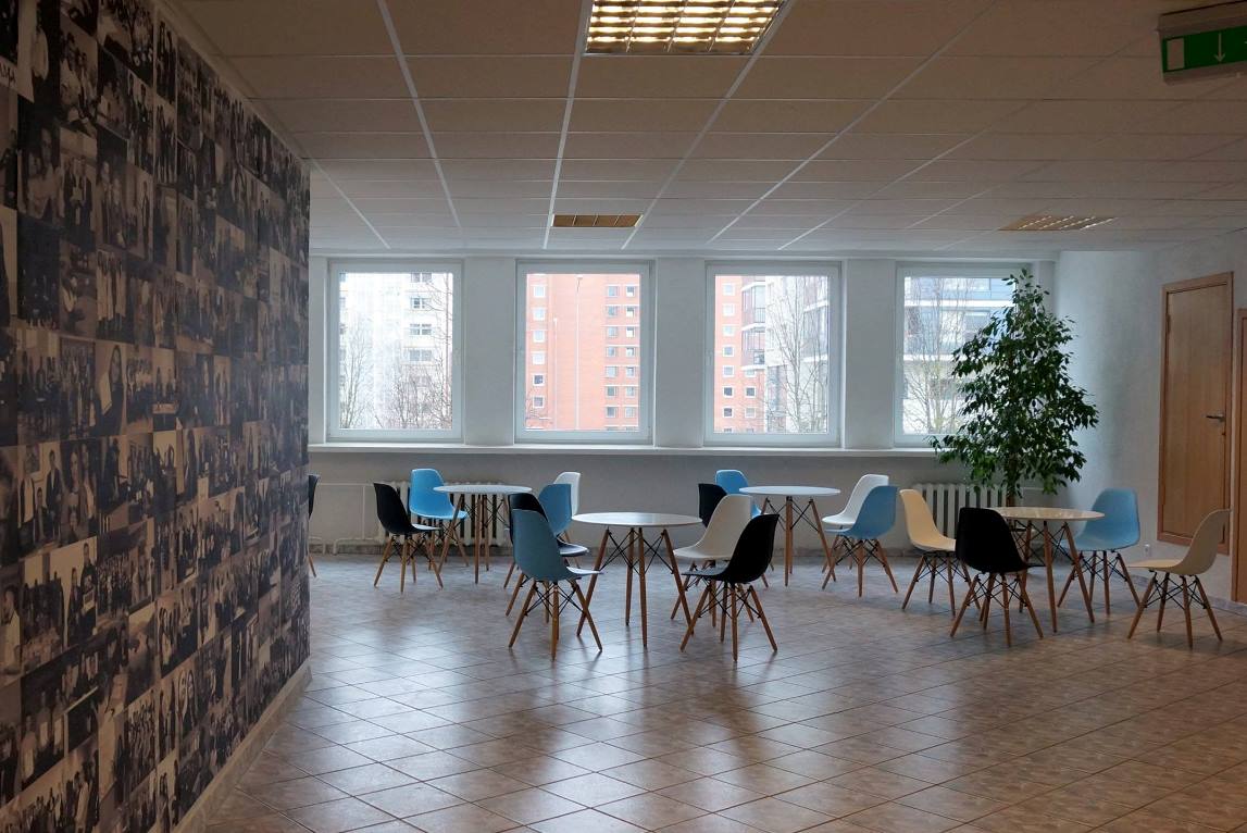 Atnaujintoje erdvėje „įsikūrė“ bendruomenės „veidų siena“. Nuotraukų siena – tai kruopščiai atrinktos Verslo vadybos fakulteto gyvenimo akimirkos, puikiai tikusios kūrybiškai darbo ir laisvalaikio erdvės atmosferai sukurti.