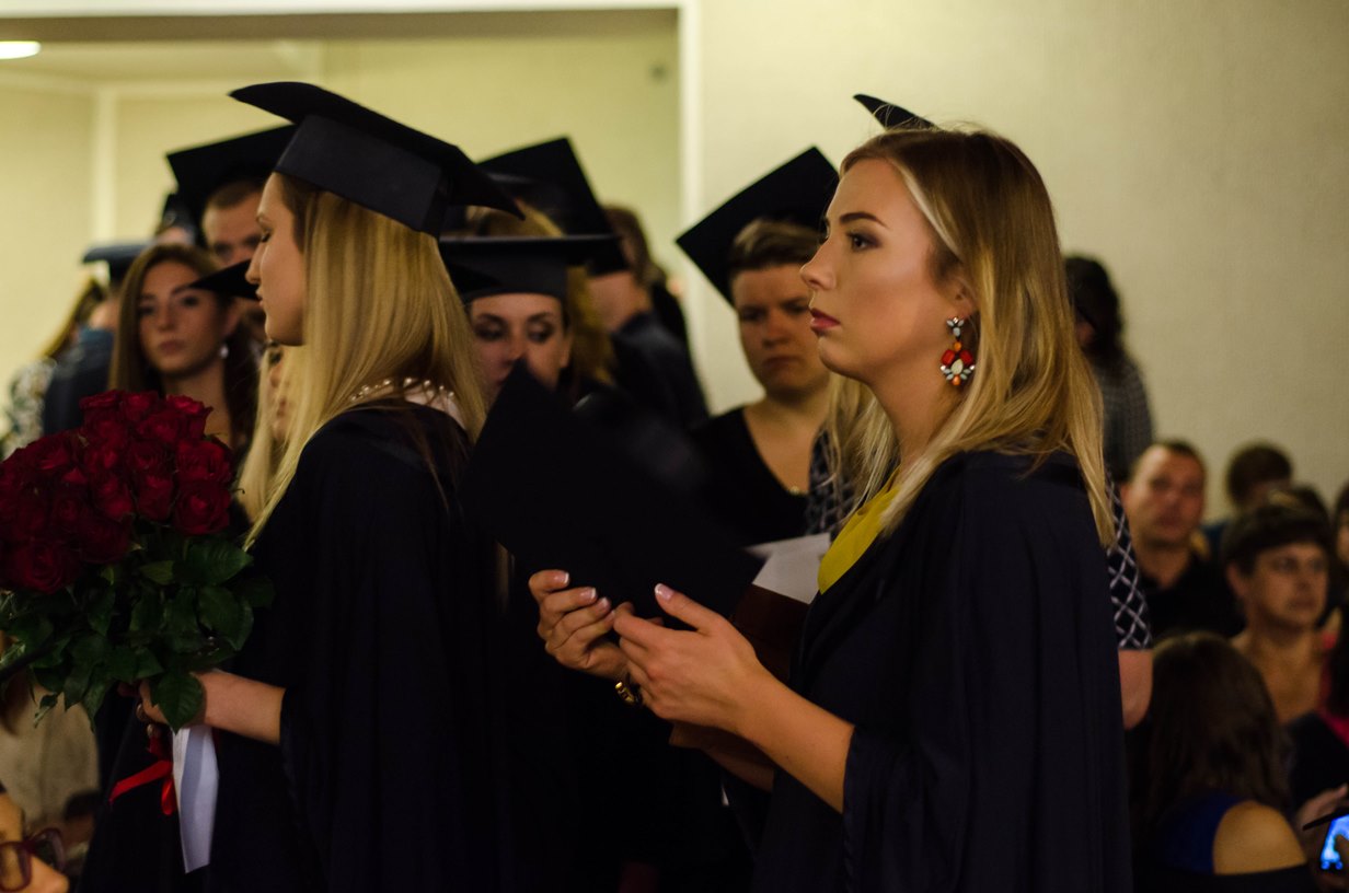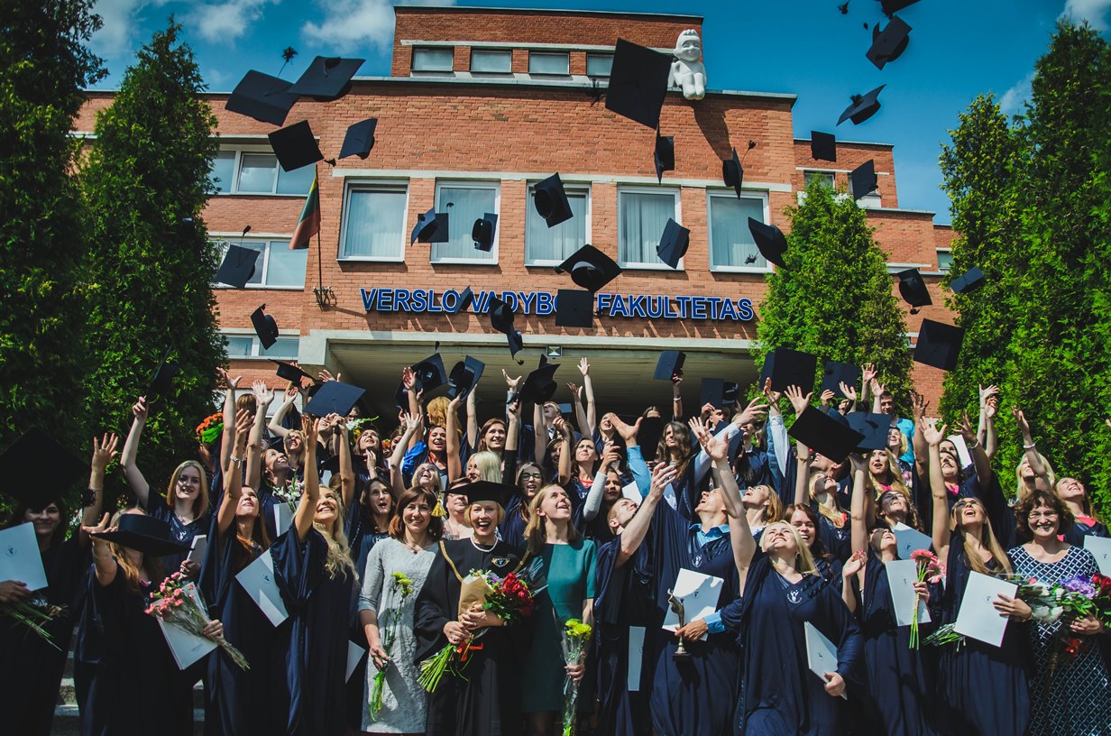 Vakar Verslo vadybos fakultete vyko nuolatinių studijų programų diplomų teikimo šventė. Trejus metus siektas diplomas – jau įstaigų administravimo, tarptautinio verslo, tarptautinės prekybos, viešbučių ir restoranų verslo, turizmo vadybos ir reklamos vadybos absolventų rankose!