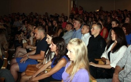 Gausiai susirinkusius studentus tradiciškai sveikino fakulteto dekanė Danutė Rasimavičienė, linkėjo šviesių, sklandžių mokslo metų bei džiaugėsi puikiais priėmimo rezultatais, akcentavo, jog šiais metais fakulteto bendruomenė, kuriai ji vadovauja, gali didžiuotis net penkiais geriausiais šalies absolventais, kurie surinko šimtukus.