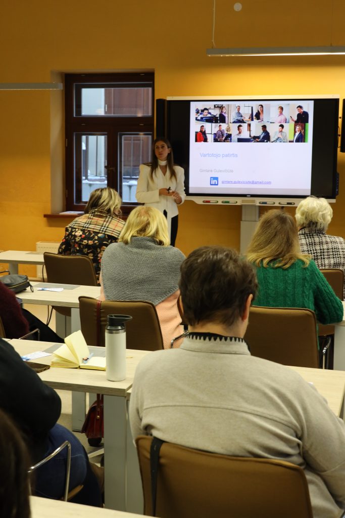 Renginio metu fakulteto Mokymų ir bendradarbiavimo plėtros skyriaus projektų vadovė Rasa Žilionė supažindino dalyvius su Verslo vadybos fakulteto vykdomomis mokymų, projektinėmis ir bendradarbiavimo veiklomis. Tuo metu Tarptautinio verslo katedros lektorė Gintarė Gulevičiūtė vedė praktinius rinkodaros kompetencijų tobulinimo mokymus, orientuotus į bibliotekų darbuotojų kasdienius iššūkius.