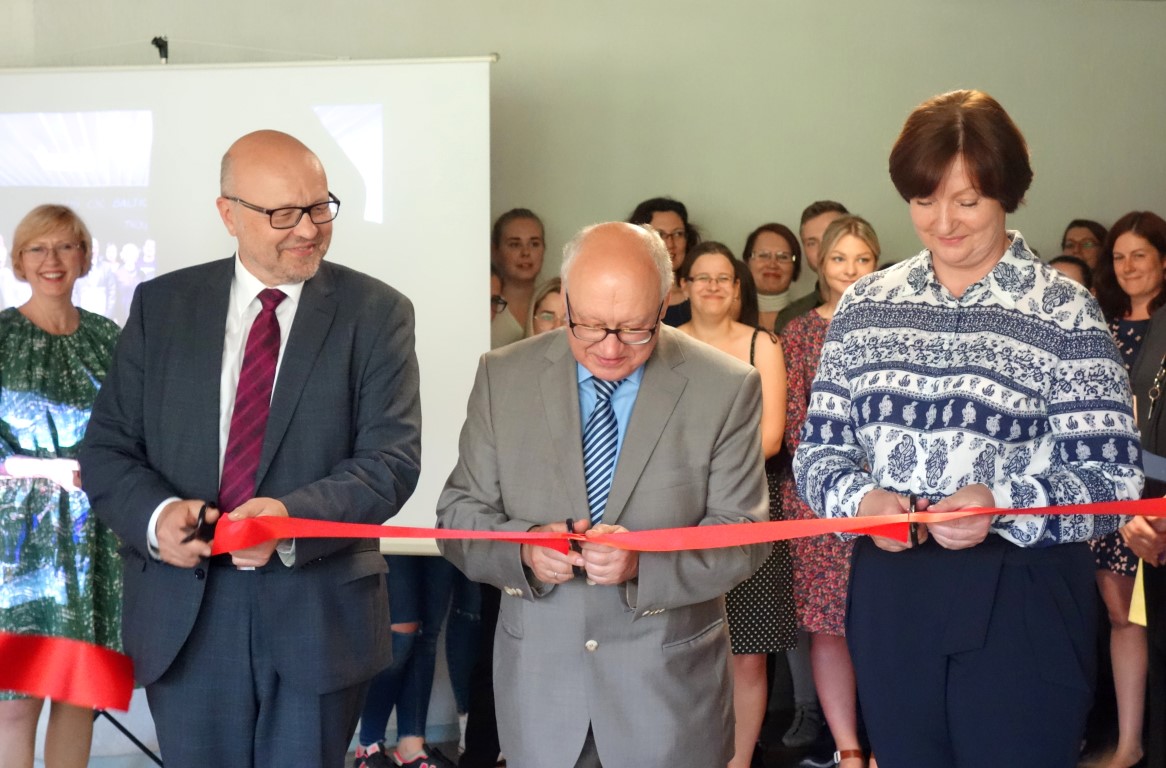 Laisvalaikio zonos atidarymo kaspiną iškilmingai perkirpo net trys direktoriai: „DXC Technology“ generalinis direktorius Antanas Uršulis, kadenciją baigiantis Vilniaus kolegijos direktorius dr. Gintautas Bražiūnas ir naujoji direktorė dr. Žymantė Jankauskienė.