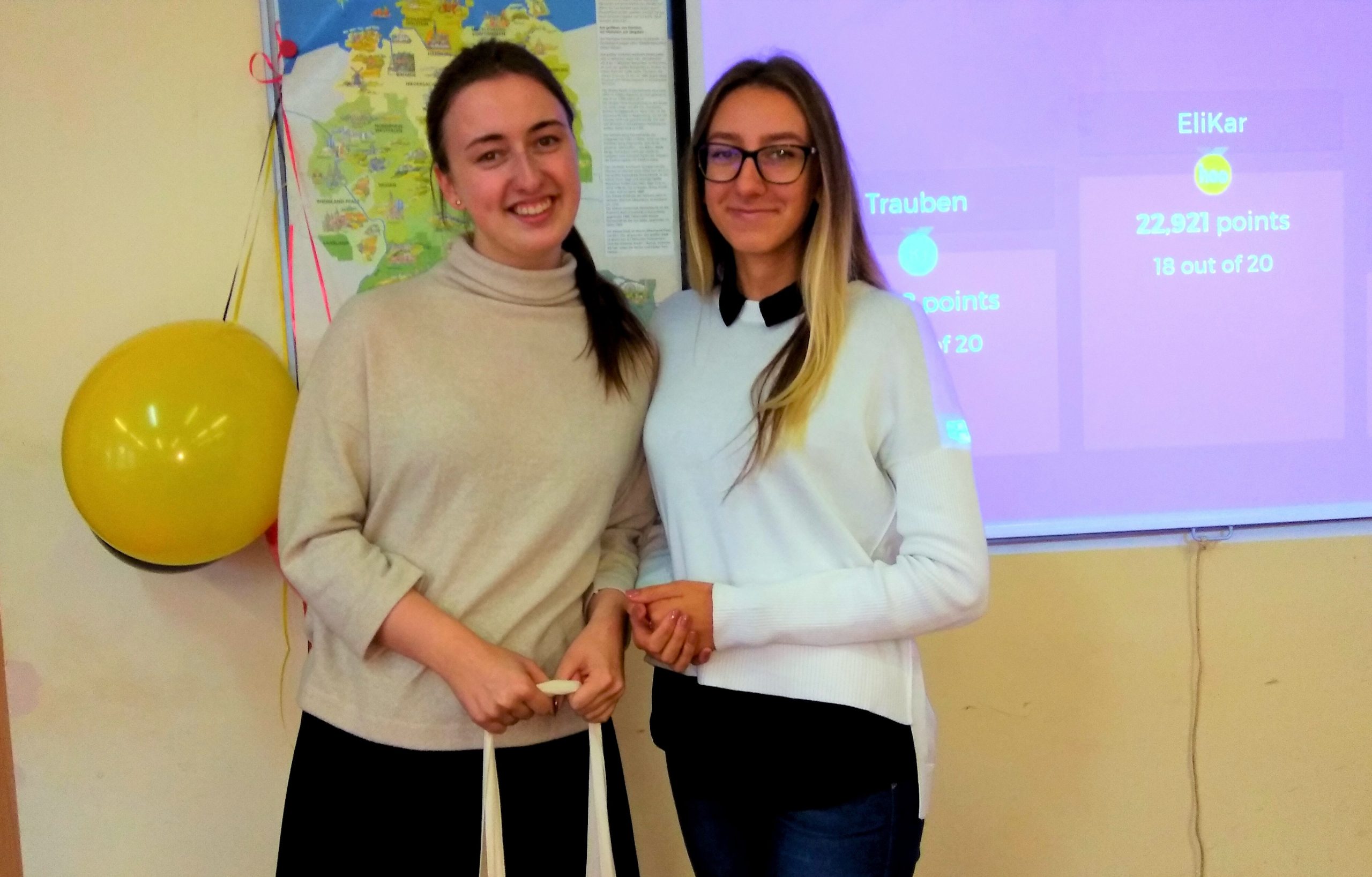 Viktorinos „Ö kaip vokiškai?“ metu, studentai demonstravo vokiečių kalbos gramatikos, žodyno ir vokiškai kalbančių šalių kultūros žinias. Prizai buvo įteikti aktyviausioms ir geriausiai pasirodžiusioms studentėms: pirmosios vietos nugalėtojoms – Elingai L. ir Karolinai Č. (VA16), antrosios vietos – Ernestai U. ir Ritai T. (VA16)  bei trečiosios vietos – Evelinai S. ir Aistei T. (VA16).